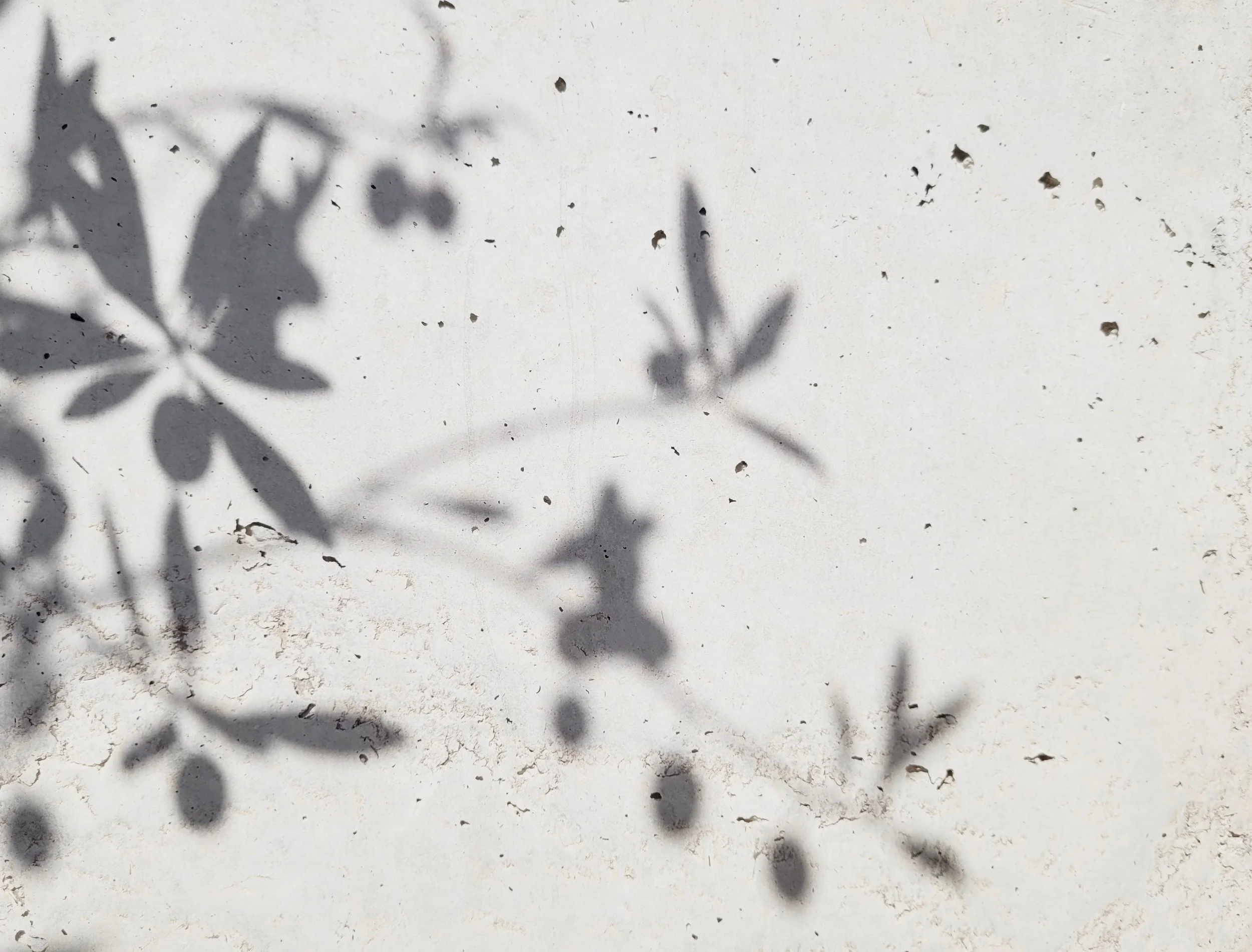 Olive leaves cast shadows against a grey surface